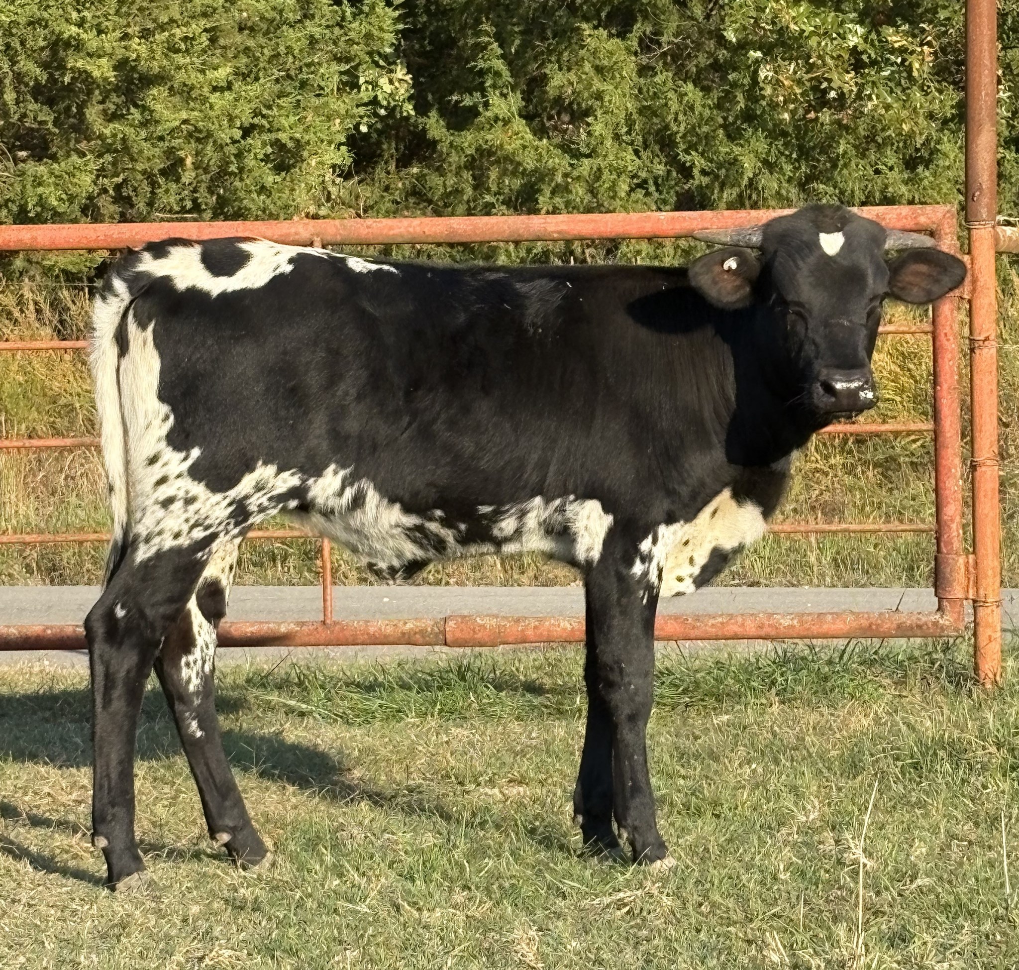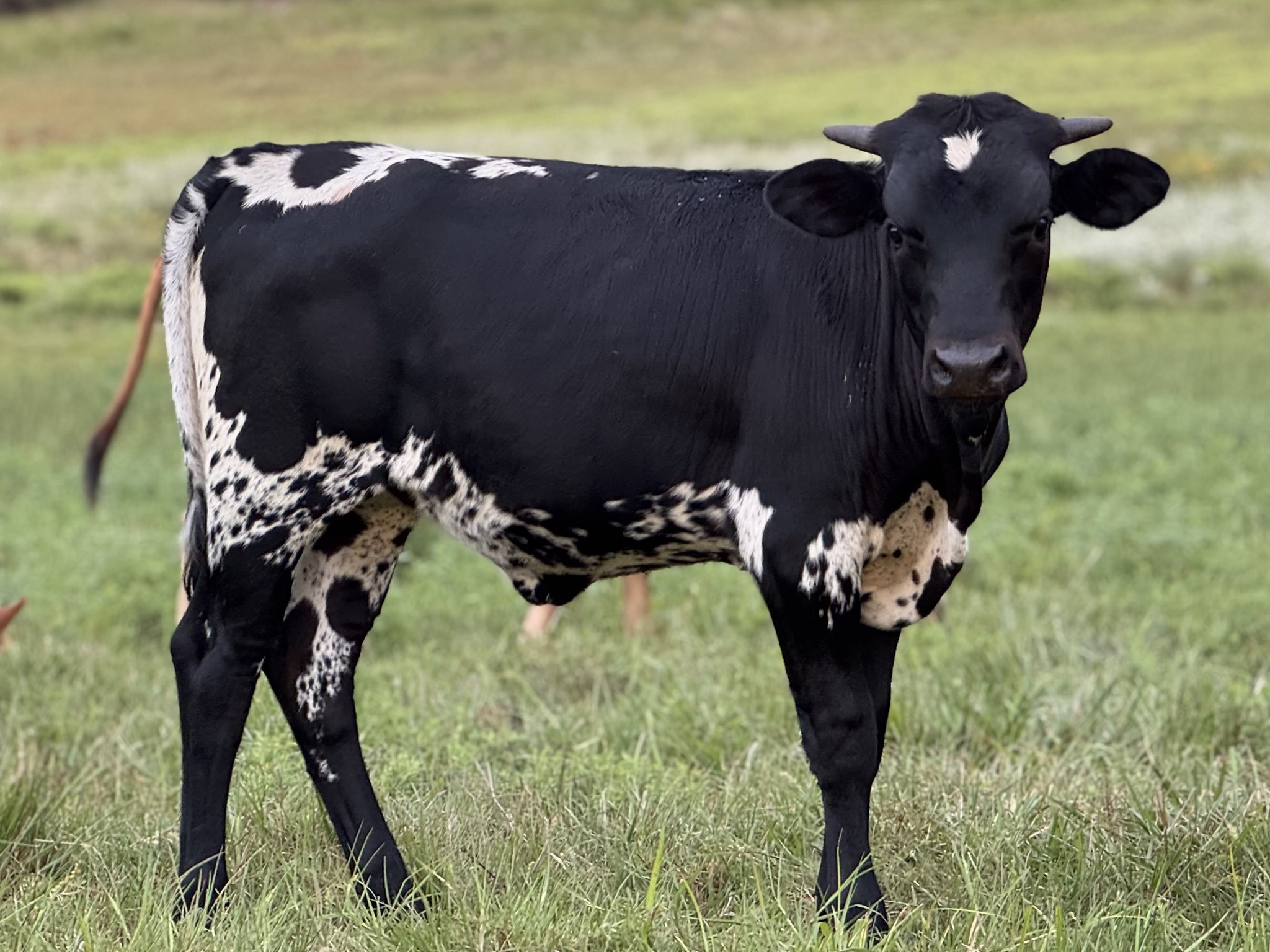 This beautiful black and white heifer is something special. Her sire is BR Black Magic XL, a son of JH Rural Safari Son, on top. She’s out of Darkened Drag, a daughter of Drag Iron. She is double bred Barn Dancer. We will pull DNA, and hopefully she will be homozygous black!!! We are super excited to add her to our herd!!